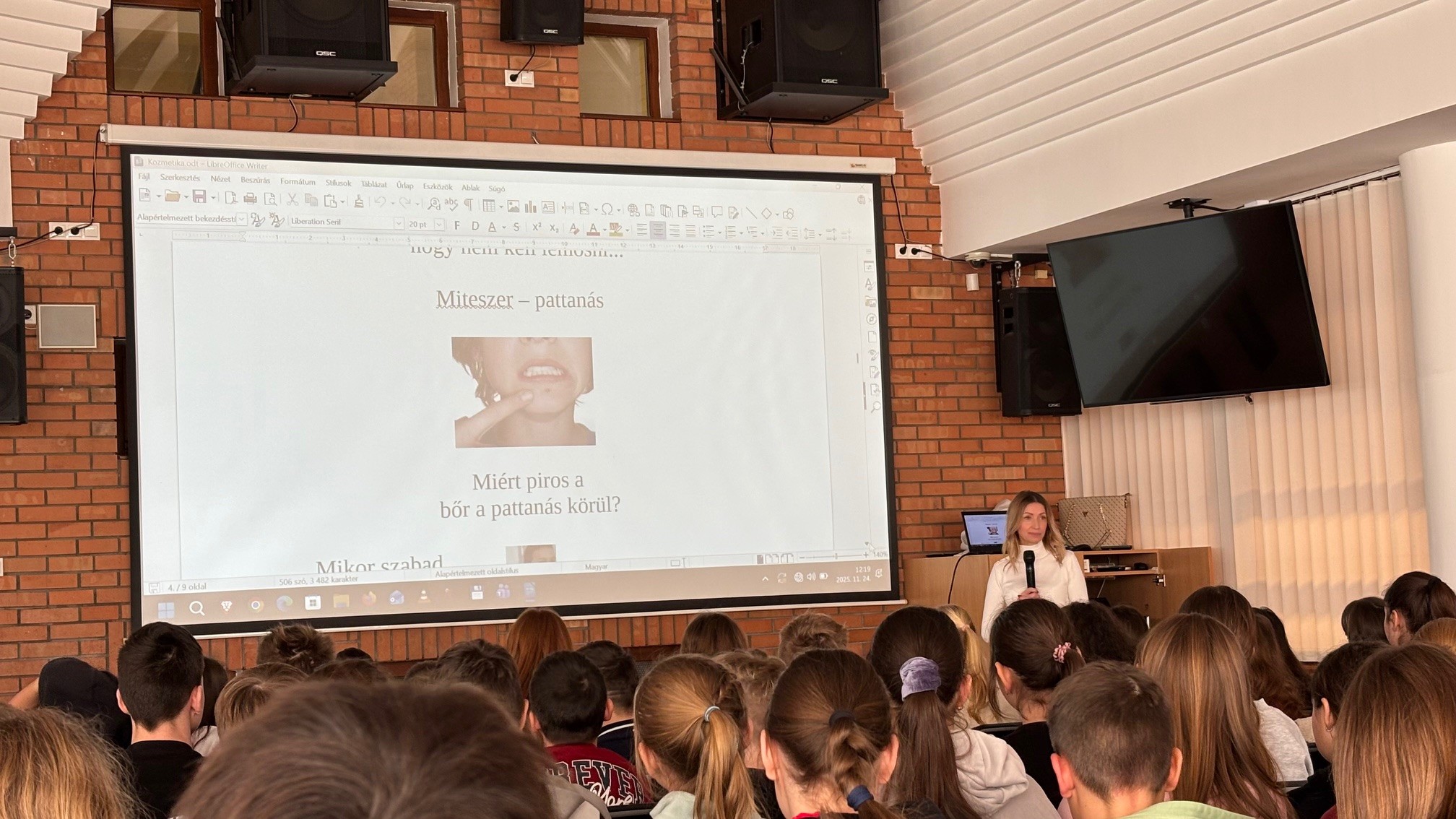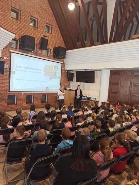 Nagyné Sarró Tímea pszichológus a gyerekek bevonásával járta körül a témát. A tanulók megismerték, hogy milyen káros hatásai lehetnek a túlzott képernyő előtt töltött időnek, és válaszokat kaptak arra is, hogy hogyan lehet okosan használni a digitális eszközöket a mindennapok során.