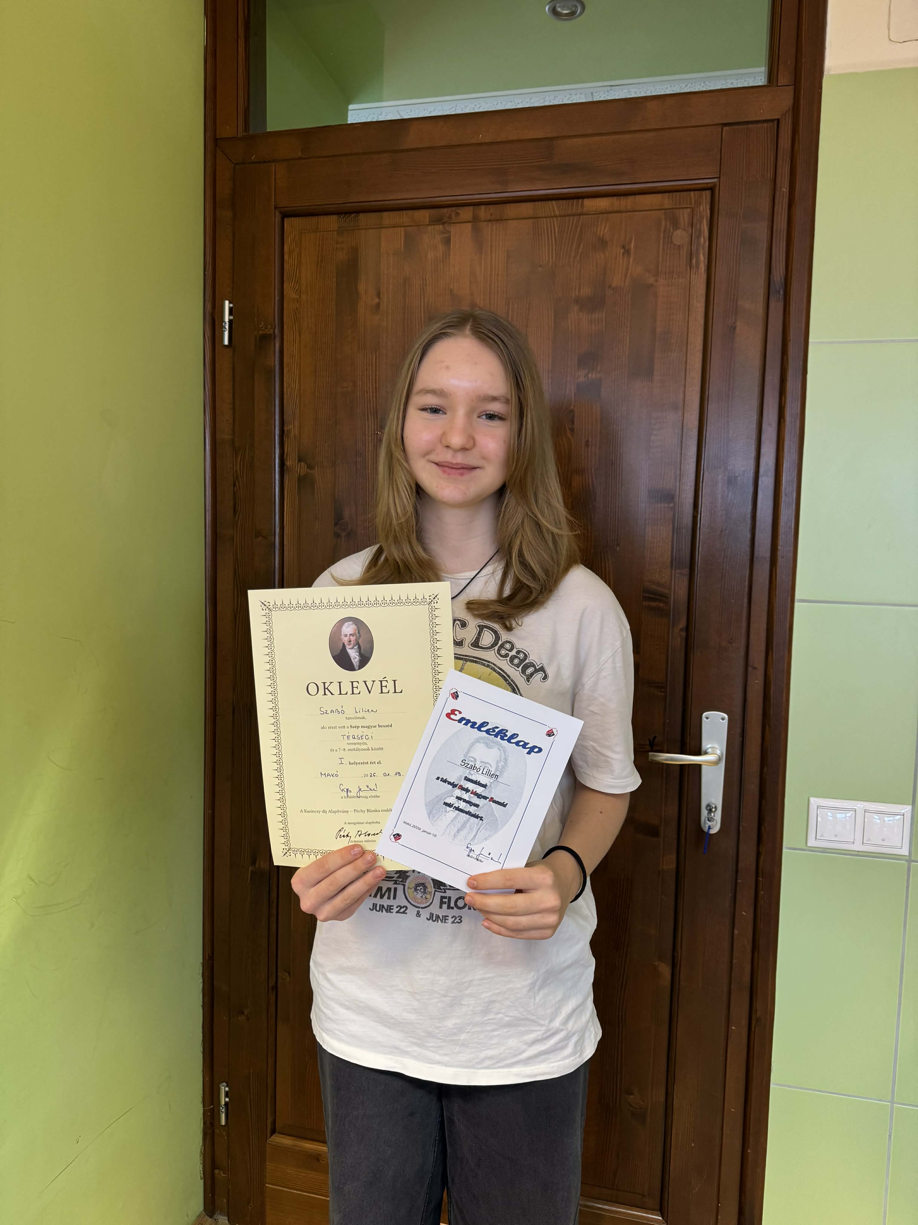 - helyezést ért el Oszlánczi Csenge (6. a), felkészítője Szabóné Varga Viktória tanárnő